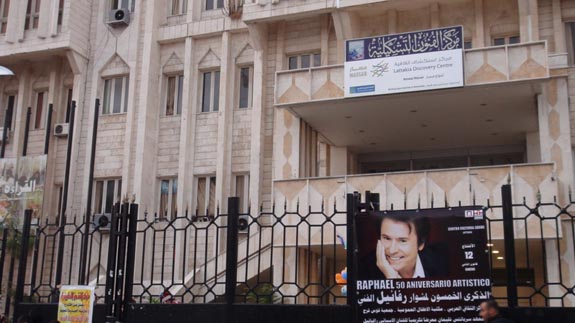 Aqu? os dejamos unas vistas de como queda el centro Cultural ?rabe de Lattakia con los carteles anunciadores.