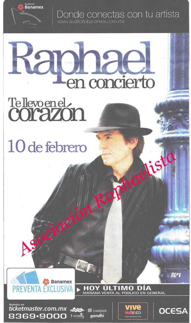 Desde Monterrey (M?xico) Martha nos envia este cartel que ya est? anunciando el concierto de RAPHAEL para el mes que viene. Empieza el nuevo a?o y con el nuevas noticias.