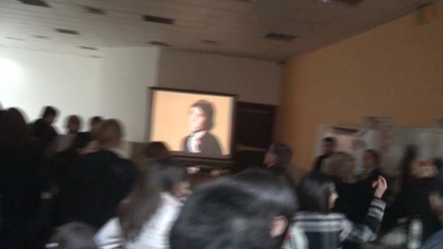 | [ Querido Miguel gracias por poner todo esto en el foro..... Estoy trabajando con video y muy pronto os envio. Montse, querida, siiiiiiiiiiiiiiiiiiiiiiiiiiiiiiiii, fue ALGO FANTASTCO!!!!!! Raphael conquisto a toda la gente! Venian muchas jovenes, apesar de que este dia alumnos de la universidad estaban con examenes, venian gente mayor, muchas rusas, equipo de TV y periodista de SANA y otra prensa. Todos estaban encantadisimos de Raphael! Rusas , que sabian a el desde a~os 70 todas en una voz decian despues de ver el video, que les mostramos , que Raphael NO CAMBIAO NADA! LA VOZ es misma y esta' preciosa, la misma expresion, la misma pasion y ojos brillan como es un joven.Si, ya es un poco mayor, que de los 70, pero EL MISMO! EL RAPHAEL! En sala cinema ofrecemos una corta conferencia. Primera fue la palabra de director de Instituto Cervantes srPablo Martin. Os envio el video de la palabra. Una chica de Centro Cultural Arabe de Lattakia ha dado 2 veces agradecimientos a Nuestra Asociacion y a mi por esa maravilla, que nos damos a gente. y fue una sorpresa. Mi hijo menor, es si recordais de entrevista conmigo de EFE, es hijo, que despierta y canta ESCANDALO, pero hoy mas gusta a el cantar SOLO UNA VEZ MAS.... este mi chico da unas cortas palabras sobre Raphael, porque la secretaria sra Fairuz en Latakia no tenia en planes decir algo, ella era solo como traductora de sr Pablo. Pero mi hijo ha hablado como un raphaelista, sus paLABRAS FUEROn cortas , pero importantes y maravillasas. Yo no podia decir la palabra , porque en actos oficiales DEBE decir en ARABE no que habla gente, sino en "fiskha" es un idioma muerta, pero es idioma en que escriben en prensa y hablan en actos oficiales. Por eso yo tenia un placer enorme escuchar tan lindas palabras de boca de mi hijo. La gente no paraba aplaudir! Hasta despues de video, que ponemos entre palabras y despues , que llega el FIN de la pelicula Estoy MUY contenta y pheliz de que todo ha pasado como queria y gente queda agradecida por este evento, que para muchos era discubrimiento de ESTE TAN MARAVILLOSO ARTE! Hoy el segundo dia y a mi debe preparase para el tarde. Saludos muy calurosos desde aqui, apesar, que tambien tenemos mucho frio. Tatiana. .