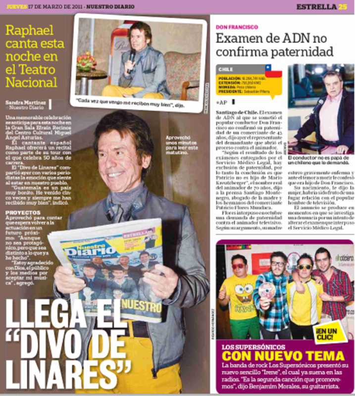 Otra nota en edicion impresa de la rueda de prensa que ofrecio ayer Raphael en Guatemala.