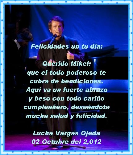 ???Muchas phelicidades Mikel!! Que pases un estupendo dia de cumplea?os rodeado de mucho cari?o y que te colmen de regalos y sobre todo que en tu fiesta suene la buena m?sica...esa que tanto nos gusta!!!.