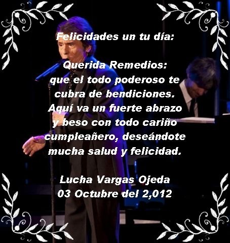???Felicidades Remedios!! Que tengas un dia de cumplea?os estupendo, rodeada de mucho cari?o que seguro no te va a faltar!!! Que los amigos y tu familia te acompa?en en este dia tan especial!!