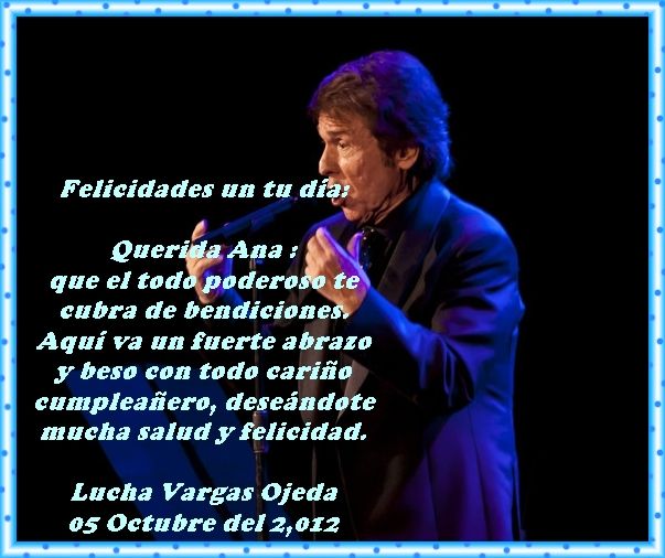 ???Feliz cumplea?os Ana!! Que pases un dia a lo grande rodeada de mucho cari?o. Y que la buena m?sica te acompa?e siempre........que sea la sintonia de hoy y de siempre!!!