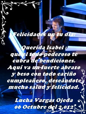 ???Muchas phelicidades Isabel!! Espero que estes teniendo un dia de cumplea?os estupendo, rodeada de mucho cari?o. Que tus deseos al soplar las velas se cumplan.