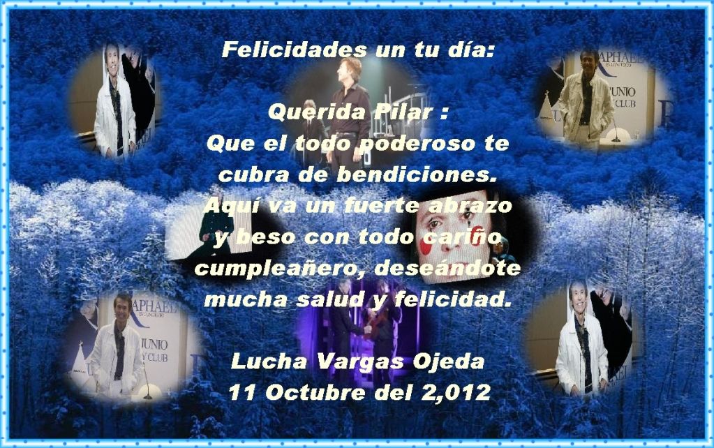 ???Muchas phelicidades Pilar!!! Aunque para tu cumple te felicito con un poco de retraso aprovecho para felicitarte doblemente por ?l y por tu santo. Espero que hayas pasado un dia estupendo y que ma?ana sea una prolongacion del mismo.