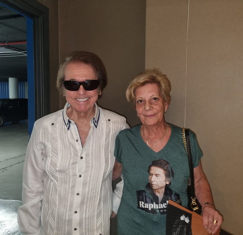 En el momento de la salida de Raphael hacia el lugar del concierto, nuestra amiga Pilar Pérez tuvo un instante de gloria al poder hacerse una foto con Raphael.