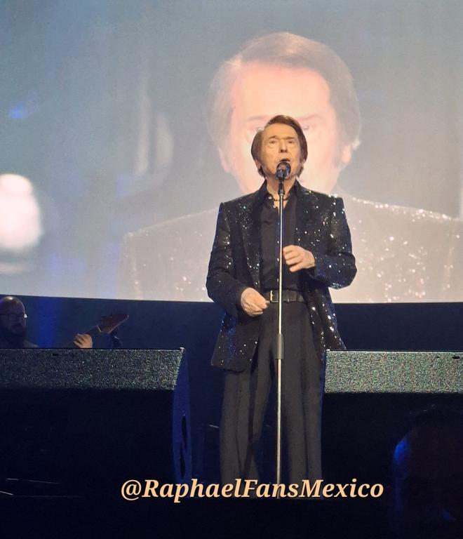 Con un atuendo en total negro el cantante español Raphael regresó a México, tras cancelar su participación en el Vive Latino 2025, por problemas de salud, para ofrecer un concierto en el Auditorio Nacional. Con una ovación fue recibido el llamado Divo de Linares quien a paso lento llegó al micrófono para interpretar “La noche”, la cual demostró que conserva su potente voz. Ya sin su saco el español deleitó a sus seguidores con “Digan lo que digan” y “Amo”, mientras que el público se entregó en “Carne viva” al originario de Linares, España.