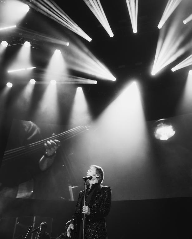 La velada también tuvo instantes más íntimos y emotivos, como “Amo”, “Si no estuvieras tú” y “Los hombres no lloran”, donde el artista mostró su lado más sensible. Además, incluyó en su repertorio temas internacionales como “Padam, Padam”, “La vie en rose” y “Himno al amor”, así como tangos como “Malena”.