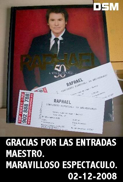 No me quiero enrollar mucho, ya que a este respecto est? todo dicho... GENIAL, DESLUMBRANTE, ESPECTACULAR todo lo que vimos all? esa noche.... ?Que manera de cantar, que manera de transmitir, que manera de interpretar!... Que espectaculo tan profesional y lleno de sentimientos nos hizo vivir nuestro querido Raphael.... Para m? ha sido increible???, lo voy a recordar toda mi vida???.....